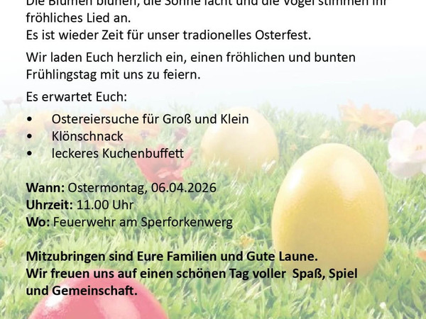 Ostermontag 06.04.26 um 11.00 Uhr an der Feuerwache im Sperforkenweg.